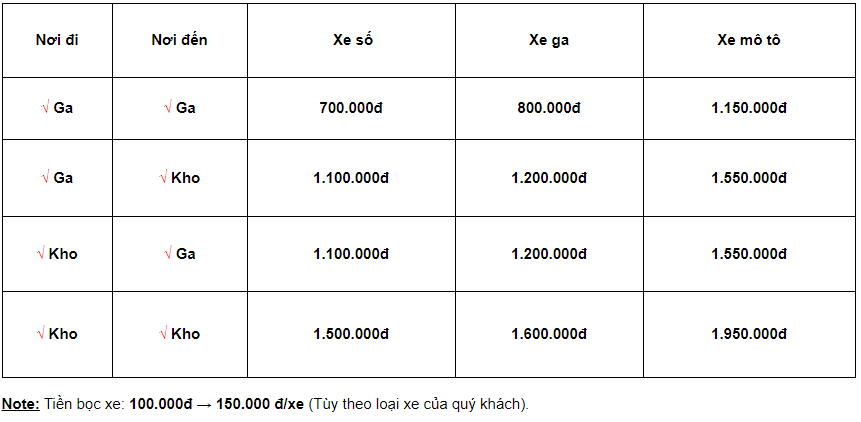 Dưới đây là bảng giá dịch vụ chuyển hàng Bắc Nam của Công ty Lưu Lê, bảng giá được niêm yết công khai, minh bạch để quý khách hàng thuận tiện tham khảo: